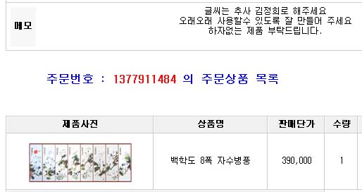 인천 박진순님! 주문 감사드립니다. ::: 제품 준비중 남원제기 주문확인 0 11314 0 2013-09-03 12:00:02 위와 같이 주문하여 주셔서 감사드립니다. 항상 건강하시고 행복한 명절 보내세요. 0