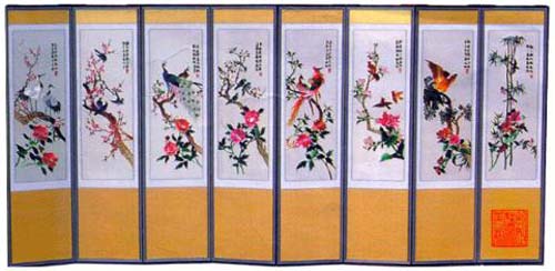 • 고급천에 자수를 곱게 놓아 병풍전체의 품격을 높여주었습니다.