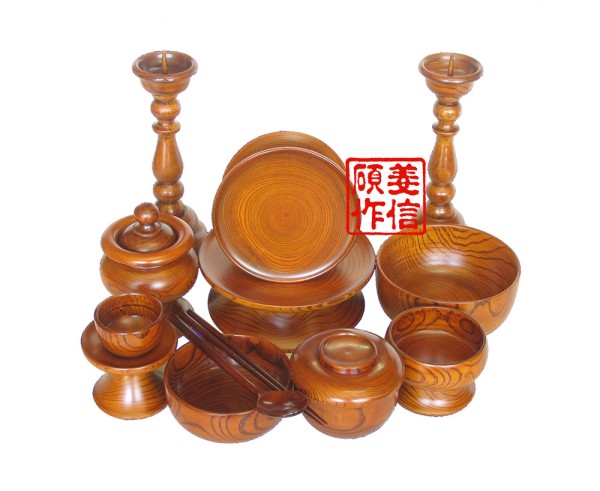 접시18개, 어틀1개, 편틀1개, 촛대2개, 지방틀1개, 향로1개, 나물접시3개, 잔3개, 잔대3개, 탕기3개, 식혜1개, 주발세트(밥그릇, 밥뚜껑, 국그릇, 수저, 저분)2벌.