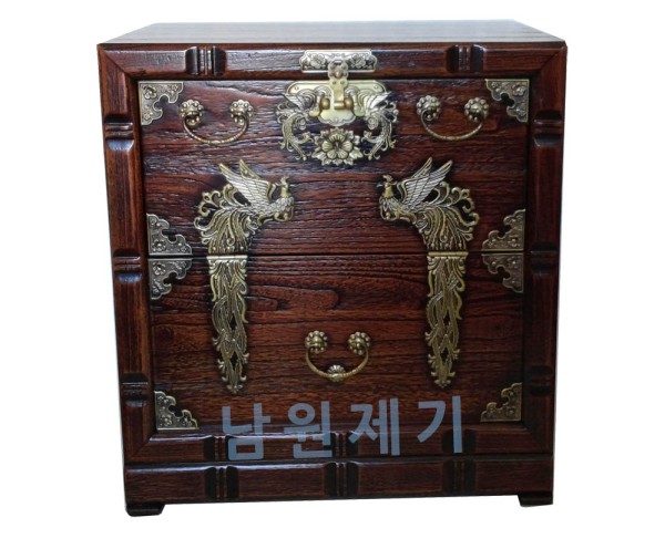 • 윗면, 좌우 옆면, 밑면과 봉황 문양이 장식된 앞면과 문짝까지도 두꺼운 오동나무로 되어 있으며, 뒷면은 합판이나 제품의 내구성을 위하여 칠이 되어 있어 습에도 강합니다. 이 처럼 보기에는 싸구려 저가형과 비슷하게 보이지만 꼼꼼이 따져 보면 제품의 질이나 품격에 있어 확연히 다르다는 것을 느끼실 수 있습니다.