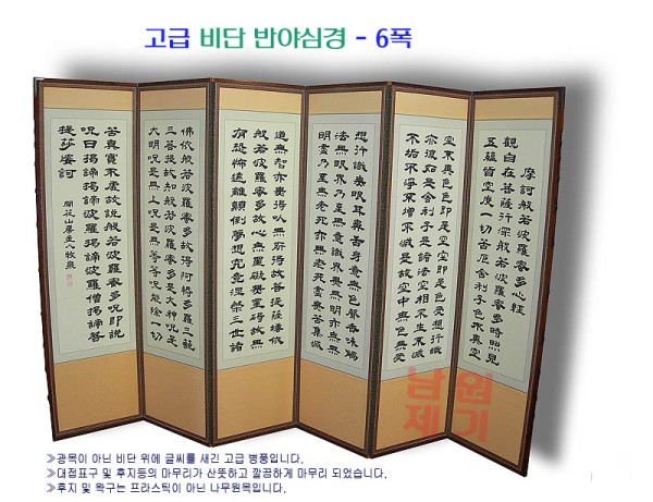• 고급 비단에 영인(인쇄)을 하여 고급스러움을 더 하였으며 병풍 전체의 품격을 높여 주었습니다.